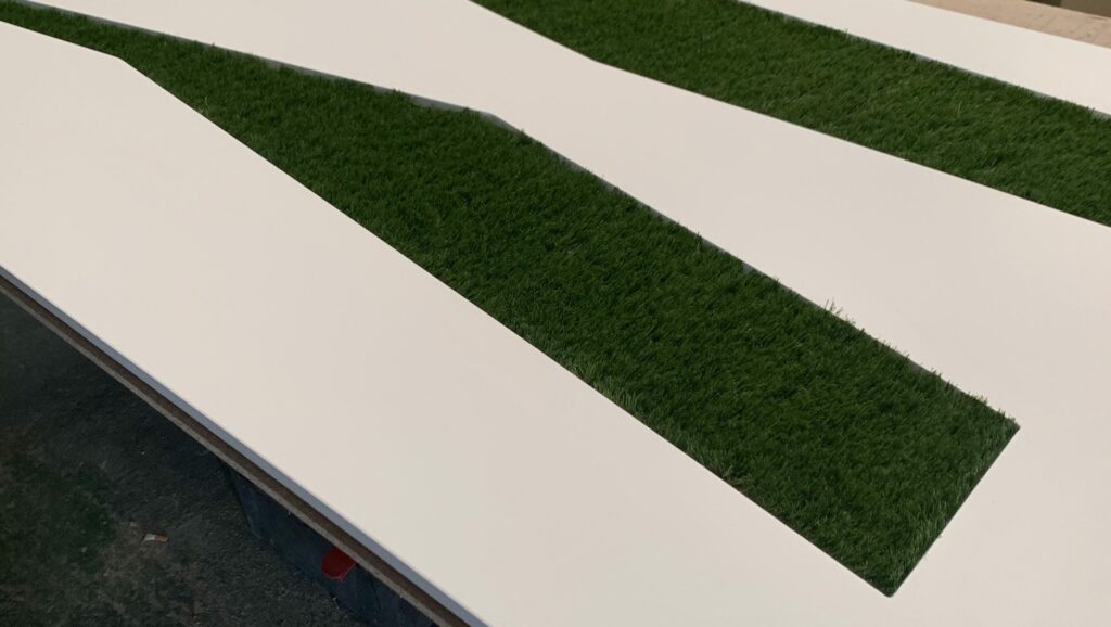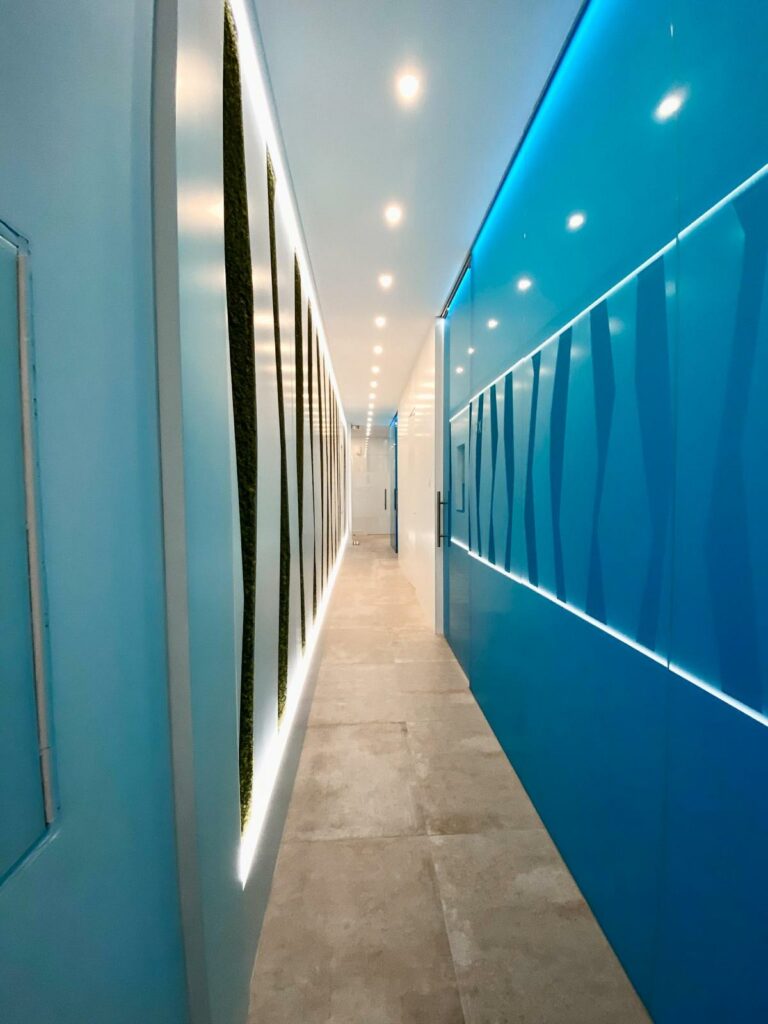 Modificamos las puertas a lo largo de un pasillo de 10 metros, levantamos un jardín vertical de césped artificial y revestimos las paredes, para lograr el objetivo predefinido.