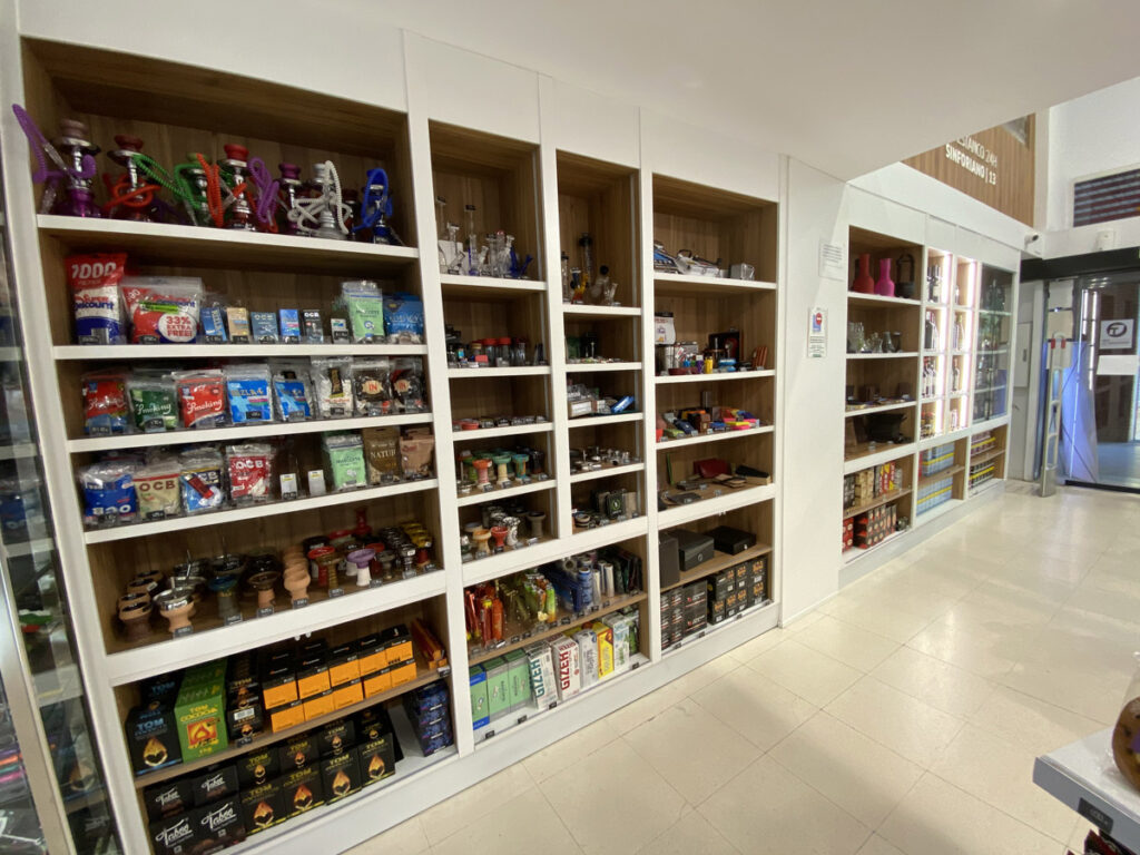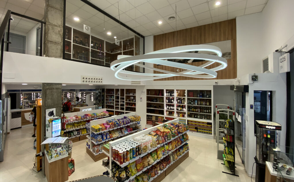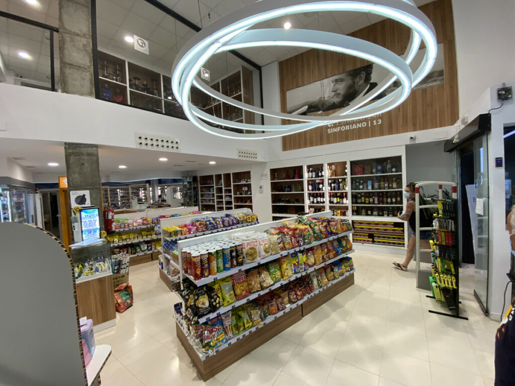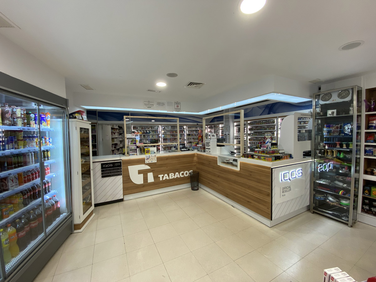 Mostrador, vitrinas, estanterías, islas, rótulos, iluminación… Hemos fabricado todo el mobiliario que conforman este local. El MDF lacado en blanco y el tablero de roble son los protagonistas en este concepto de estanco.