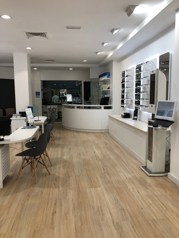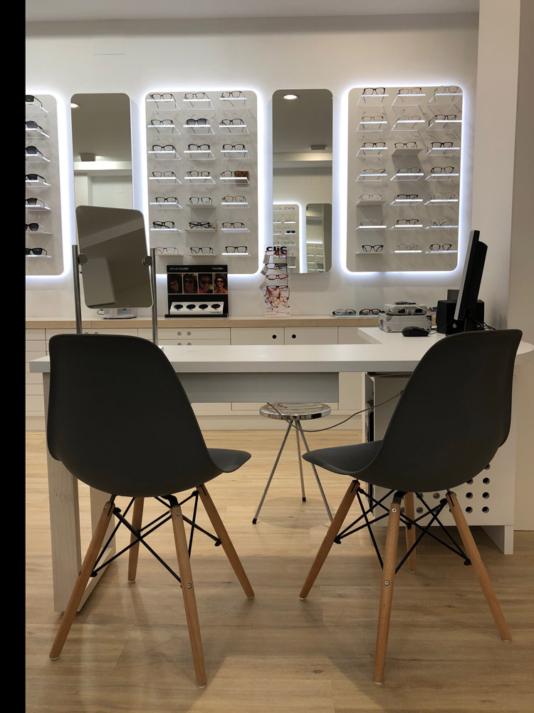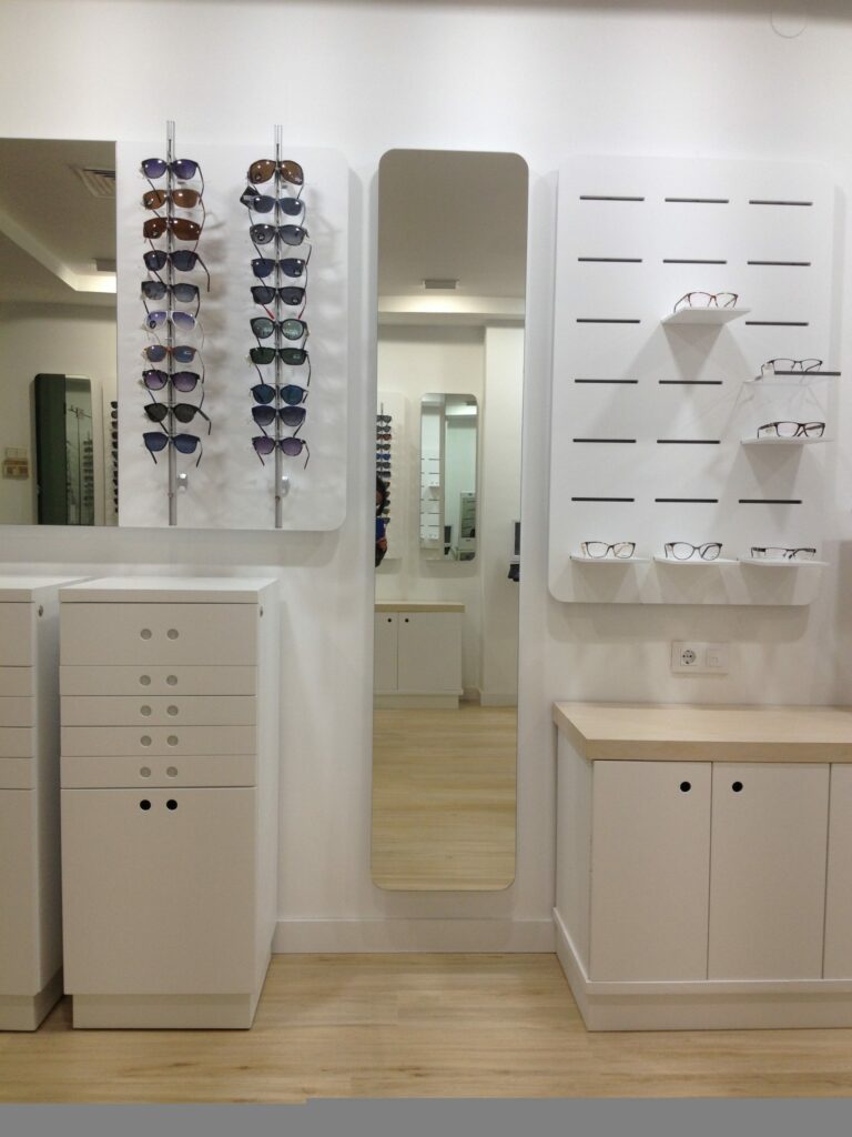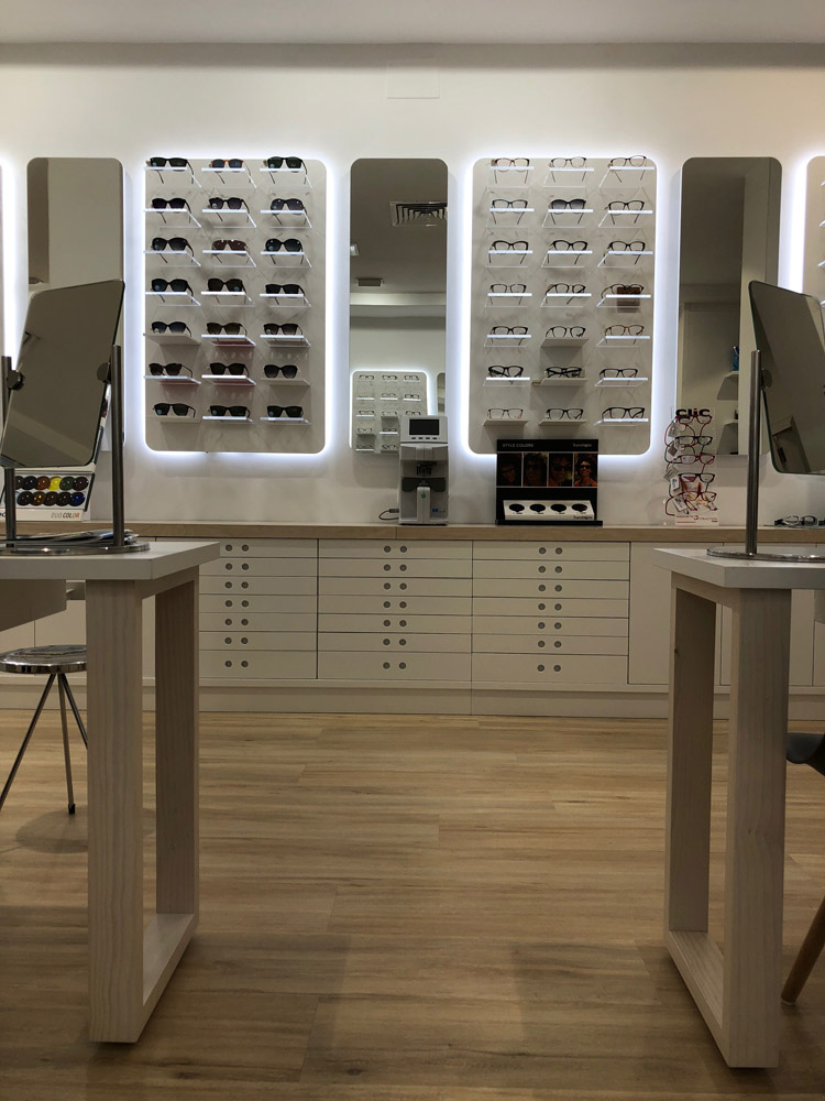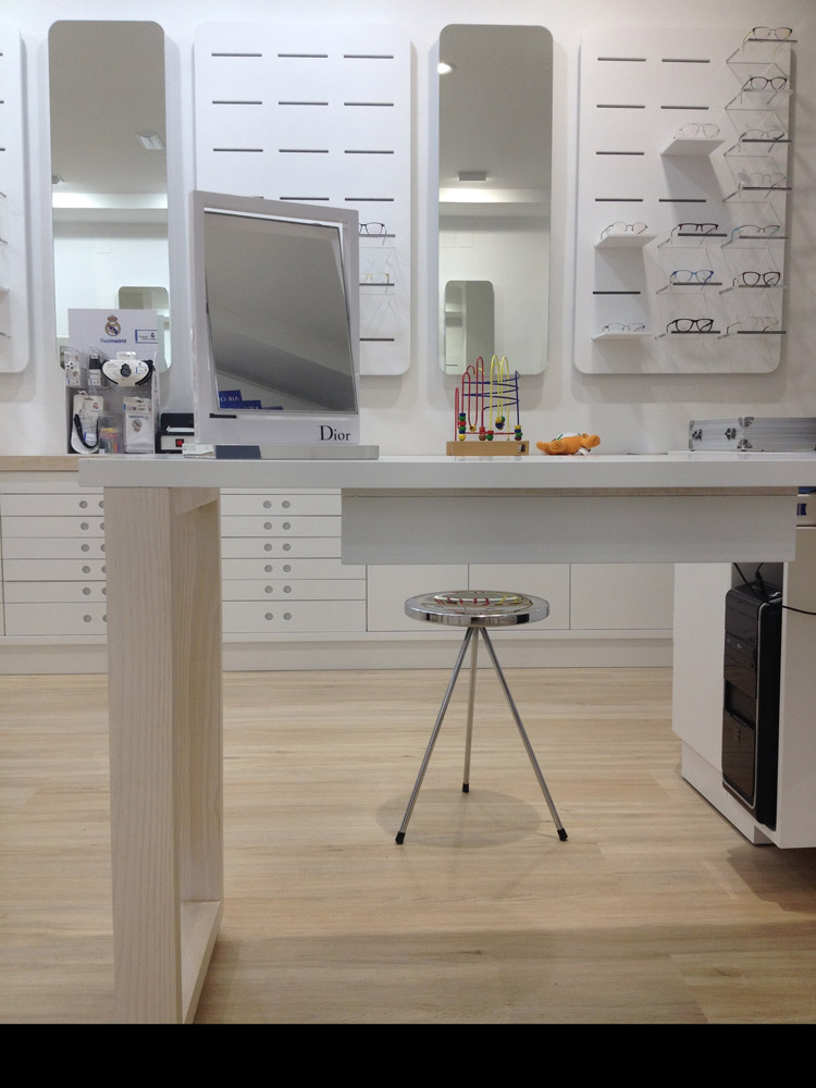 Una de las piezas que más importantes en este trabajo es el conjunto de expositores retroiluminados, que junto a la iluminación LED y las peanas de metacrilato, crea un punto de atención para el cliente muy efectivo, así como un recurso muy estético para el local.